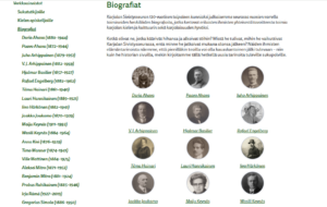 Nyt julkaistavat 20 biografiaa painottuvat seuran alkuvuosikymmeniin. Niitä ovat kirjoittaneet mm. Onni Ukkonen, Eeva-Kaisa Linna ja Pekka Vaara. Uusia tekstejä myöhempien vuosien vaikuttajista julkaistaan sitä mukaa kuin niitä valmistuu.