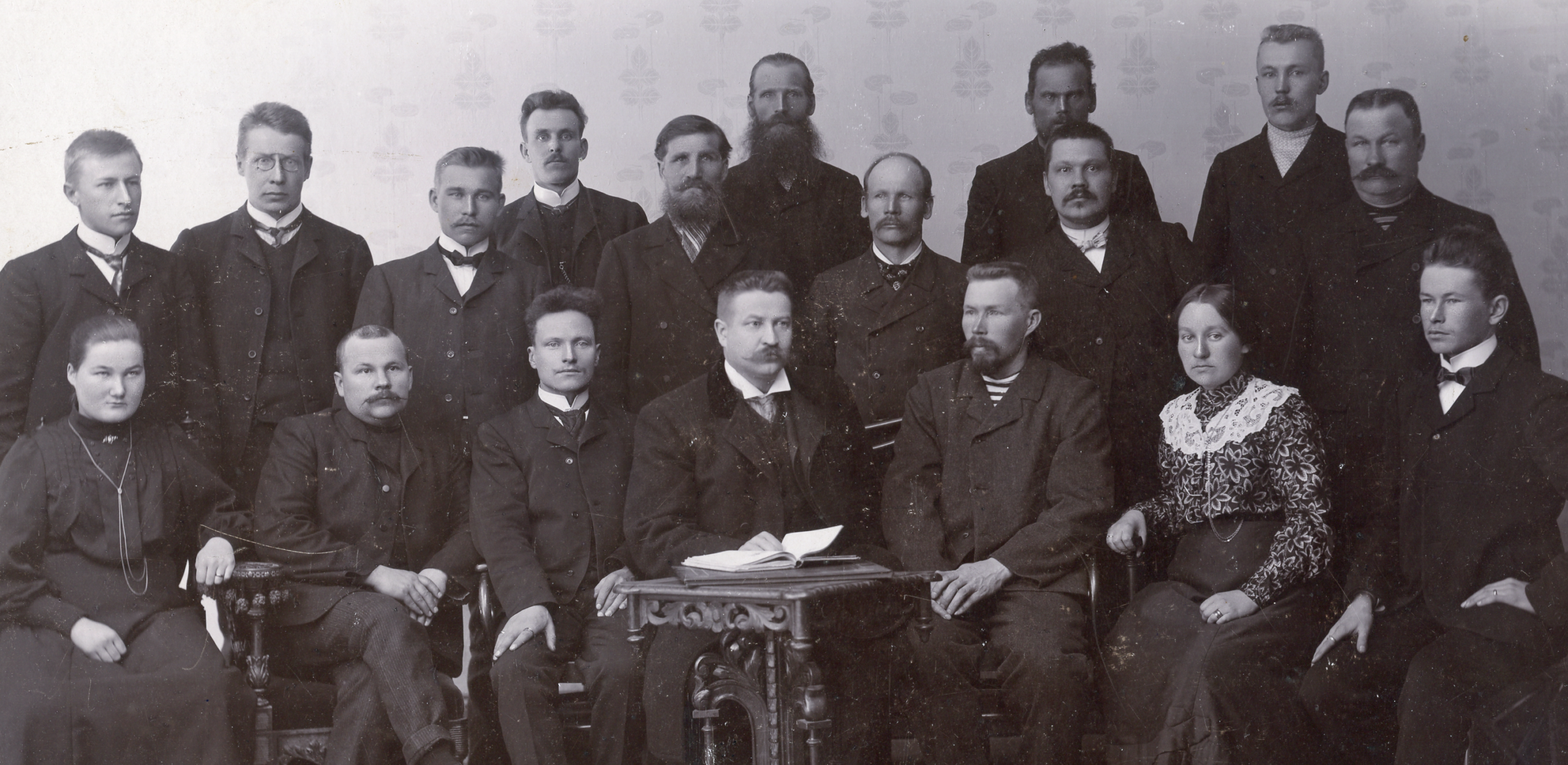 Pääkuva: Wienan Karjalaisten Liiton alustavan kokouksen osanottajat Vaasassa 25. huhtikuuta 1906. Lähde: Sampo-tietokanta