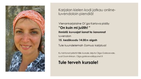 Olga Karlovan luento ”On kuin mi juštih!” Zoomissa 15. kesäkuuta