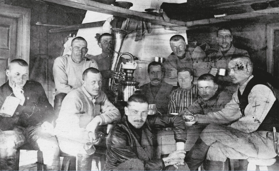 KUVA: Malmin joukon heimosotureita Uhtualla pitkänäperjantaina 1918. (Lähde: Sampo-tietokanta)