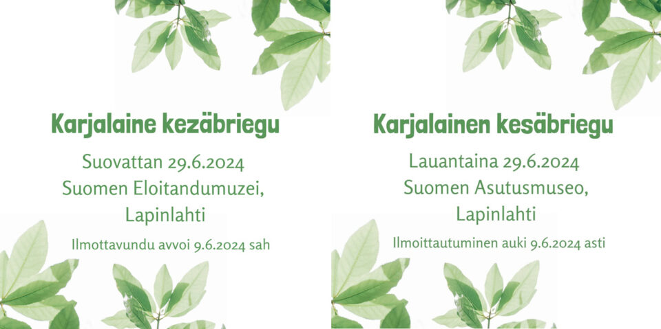 Lapinlahden karjalaiset järjestää yhdessä Suomen Asutusmuseosäätiön ja Karjalaiset nuoret Suomessa -järjestön kanssa nuorekkaan kesätapahtuman lauantaina 29.6. Suomen Asutusmuseolla, Lapinlahden Alapitkällä.