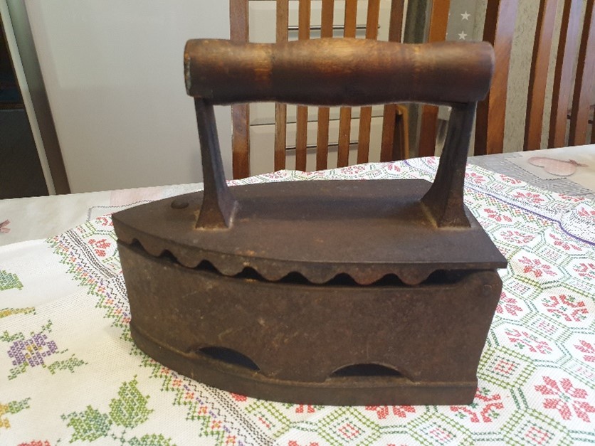 Hiilišilityšrauta. Ämmöllä oli tallešša vieläi hiililöilla ruataja šilityšrauta, ka en muissa, jotta ši käytettäis miun aikah.