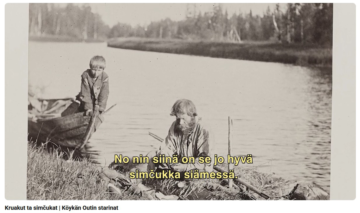 Kuvakaappaus: Vuokkiniemi-seuran YouTube-kanava. Kuva: Rannalla kruakkuloista šuamašša simčukkua, Venehjärvi 1894 / I.K. Inha, Historian kuvakokoelma, Suomen Maantieteellisen Seuran kokoelma, Museovirasto