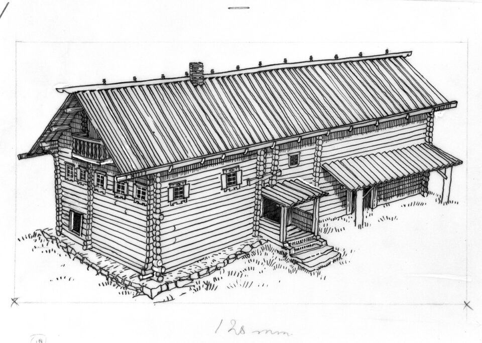 Katto srojittih pitkien niškaparziloin varah. Yläpohja typittih kuivilla lehtilöillä, turbehella da havuloilla, seinät rivettih sammalella. Kattoh kuului dai kokkapuut, kumbazet kannatettih potokkua libo räyssäslaudua. Kokkapuut čökättih kiini pruaviloih. Harjaparren piällä laitettih žoloba, kumbane kiinitettih pardeh harjatappiloilla libo bul’bukoilla. Kattolauvan n’okat mändih žoloban alla, nenga ei vezi piässyn pertin sydämeh. Räystähien tuulilauvoilla oli dai sama tarkoitus. Harjaparren alapuolella olijua čomennusta kučuttih liemuksi.