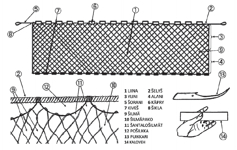 Näin aletah kutuo luomuštua – verkon šilmärivijä. Kun verkko on šuatu kuvotukši valmehekši, ruvetah šitä rakentamah. Rakentamiseh kuuluu ylisen ta alasen lisyämini lujemmašta rihmašta šantalošilmie, verkon käpryttämini ta kiveštämini.