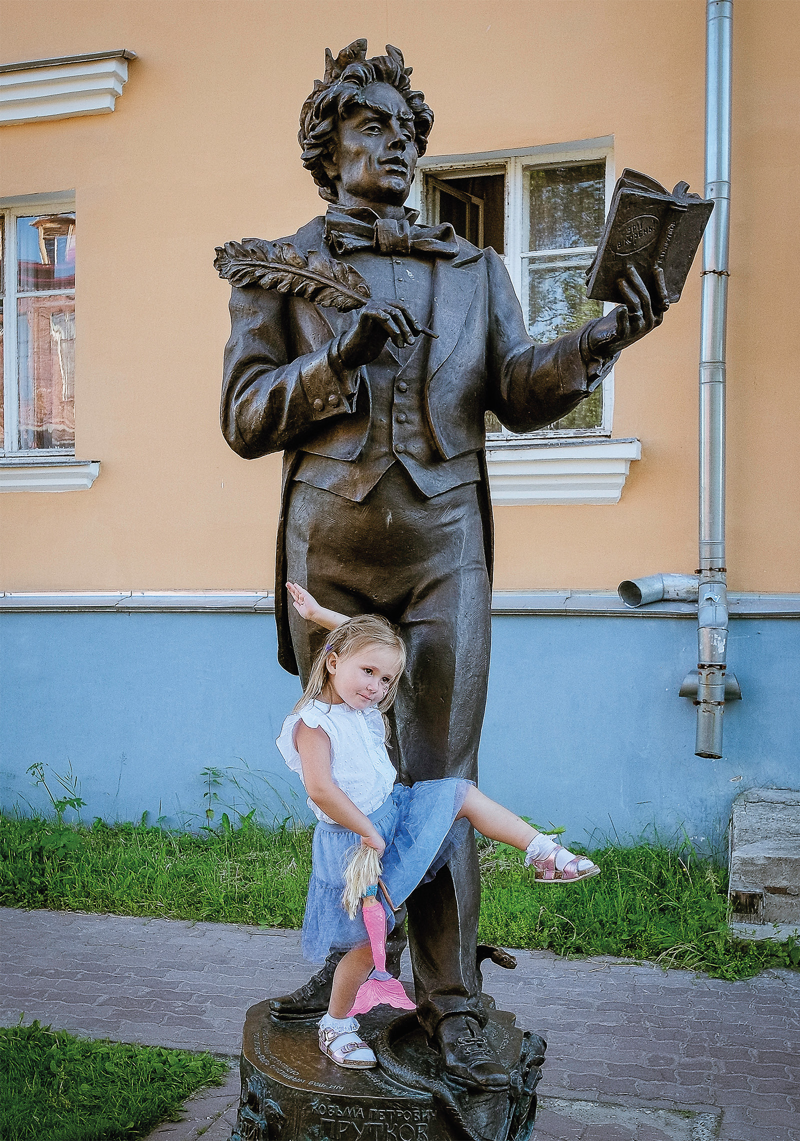 Venäläiset vaimot – perheen yhtenäisyyden ylläpitäjät on tyypillisen venäläisen naisen muistomerkki, jossa ovat kuvattuina perinteiset perheen ja elämän symbolit: lapsi, kissa, kehruupuu. Nainen istuu kirja sylissään. Patsaan elementit kuvaavat naista, joka hoitaa kodissaan kaiken, mutta pyrkii samalla kehittämään itseään. Niin tyypillistä useimmille venäläisille naisille!