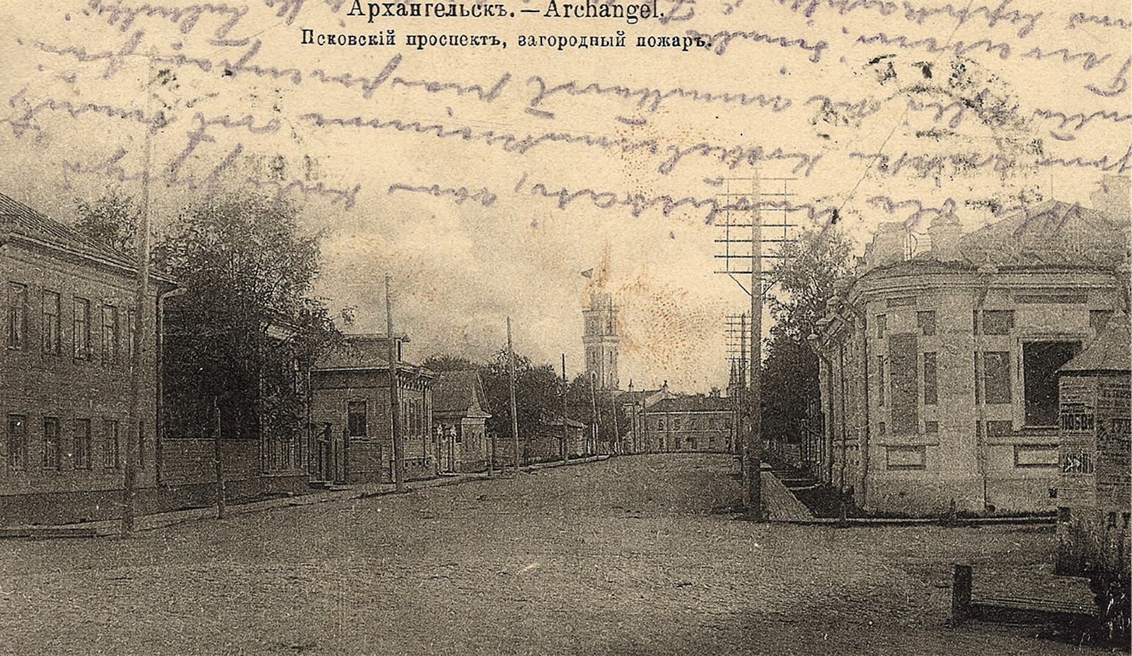 Isoisäni Iivo Kaukoniemi pysähtyi hetkeksi aikaa Arkangeliin matkallaan ensimmäiseen maailmansotaan. Hän on lähettänyt vaimolleen Annalle 26.6.1916 Petrogradissa päivätyn kortin, jossa on kuvattuna nykyisen Tšumbarova-Lutšinskogo-kadun Vienanjoen puoleinen alkupää. Katu on silloin ollut nimeltään Pskovskij prospekt. Nykyisen nimensä katu sai vuonna 1921 nuorena kuolleen bolševikkijohtajan mukaan.